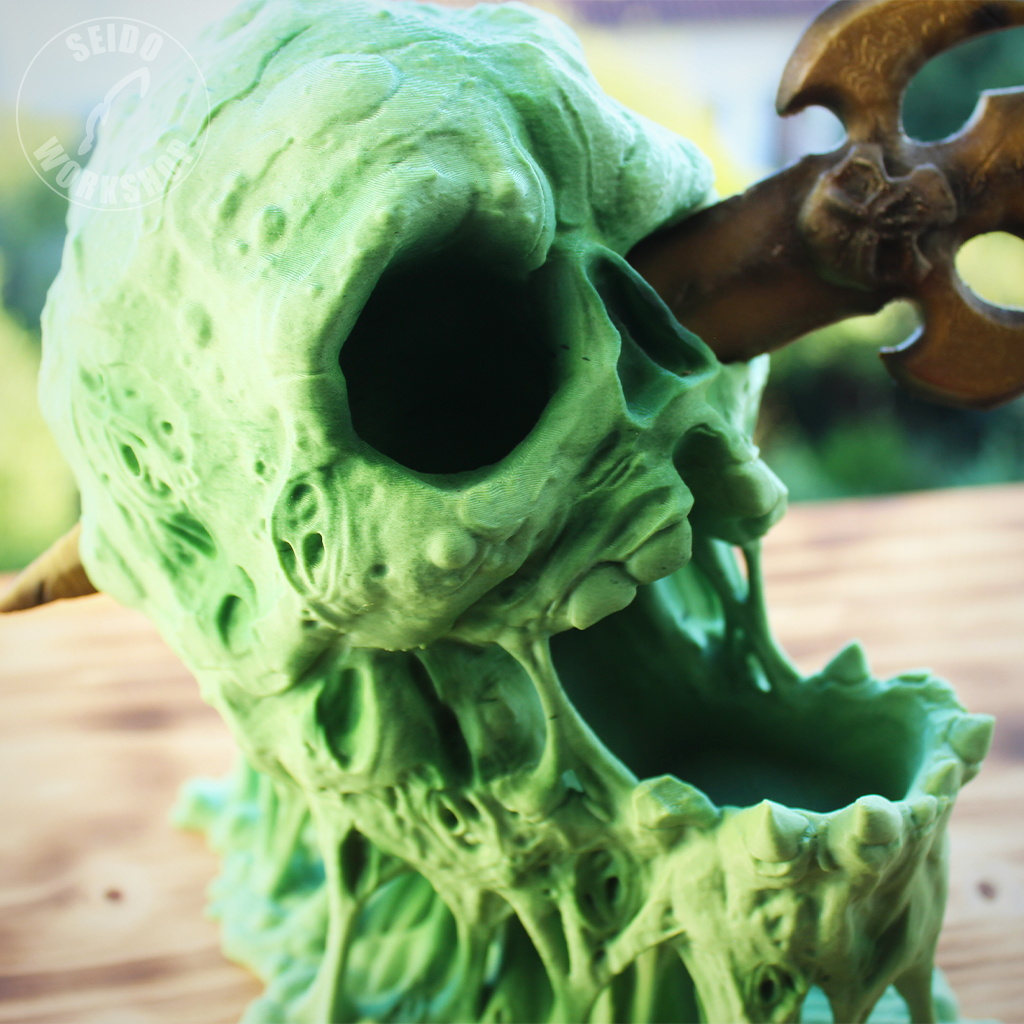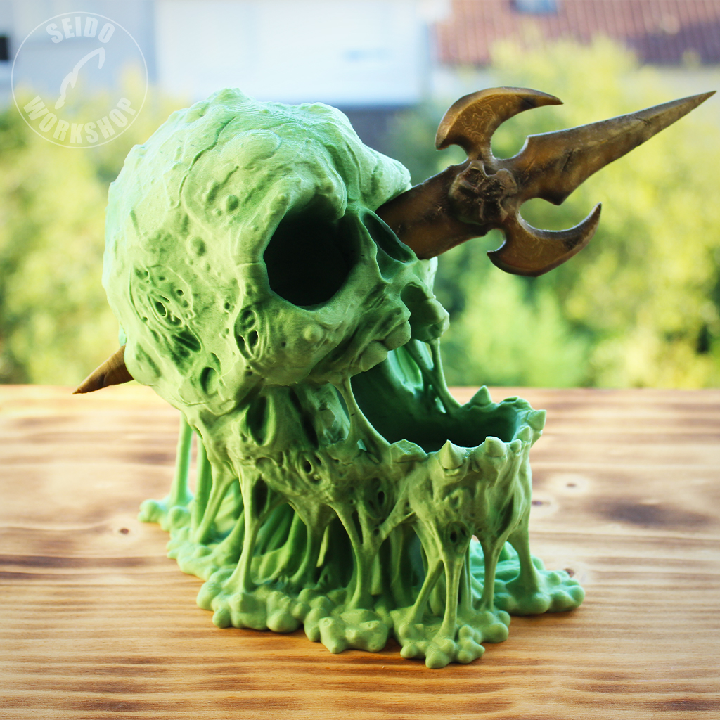 Ajoutez une touche macabre à vos parties de jeu avec cette tour à dés unique. Imprimée en 3D avec une finition détaillée, cette tour permet de lancer vos dés par l’orbite et de les voir ressortir par la bouche, alliant esthétique sombre et fonctionnalité ludique. Parfaite pour les amateurs de jeux de rôle et d’univers fantastiques !